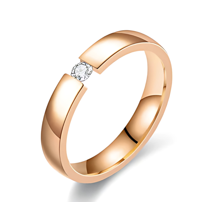O destaque fica por conta do diamante ou zircônia polida de 15 pontos, cravejado com precisão em um aro de 5 mm de espessura.